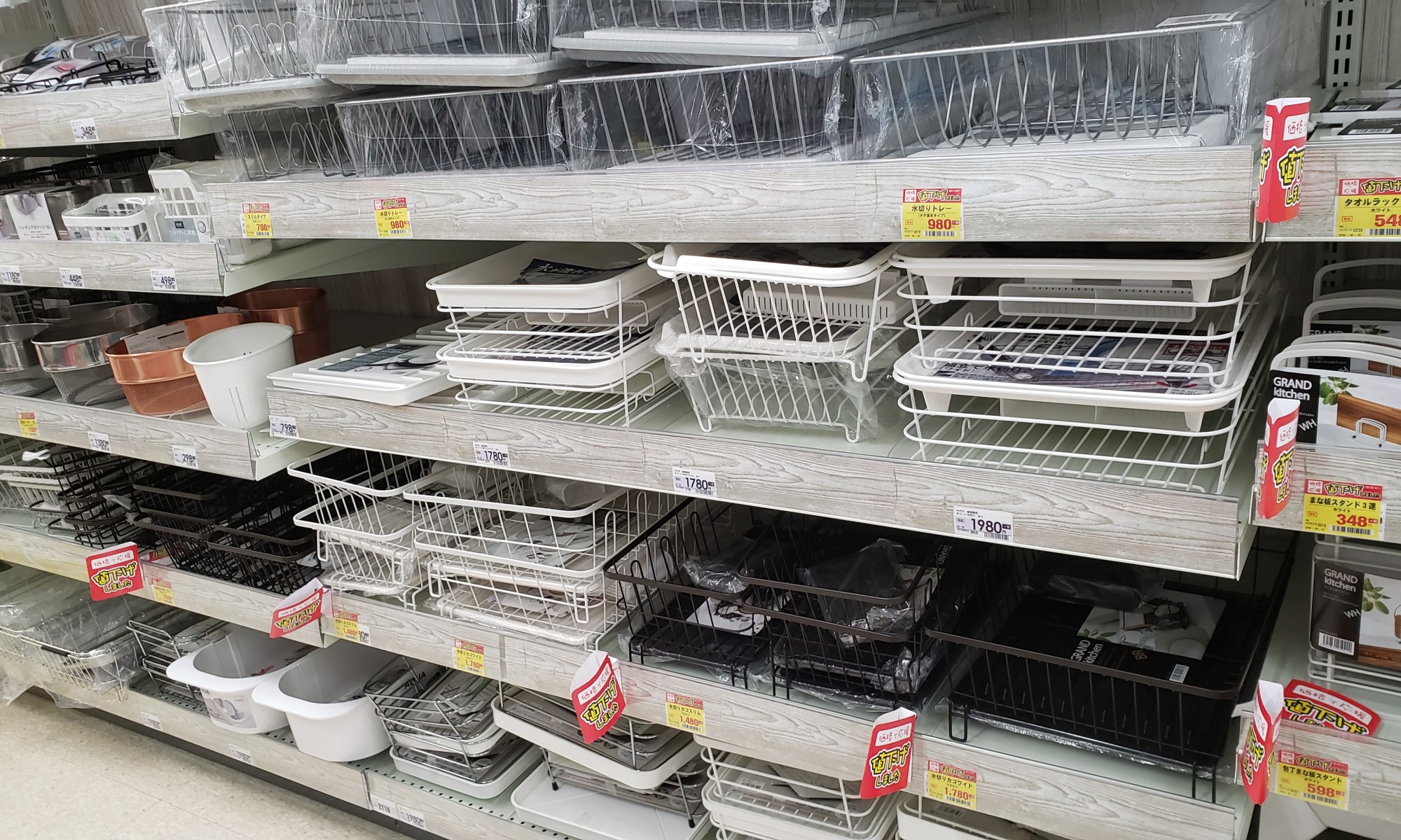 これを今更変えることはできないので、このスタイルで快適に生活できないかなと思い、先日キッチンのカゴが薄汚れていたので新しいのを買いにきた。