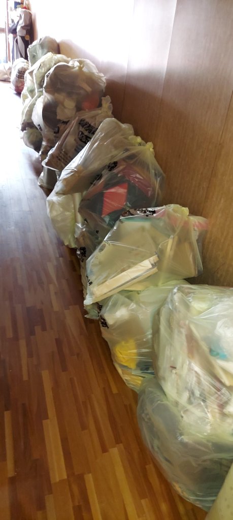 奥様は片付けたいけど、ご家族はあまり問題に思っていなくて進まない。お仕事が忙しくて休みが少ない。引越しを繰り返していたのと、お父様のお客様がたくさん来られて賑やかだったことが伺える食器や布団。物が物凄くたくさんありすぎて目の当たりにするとどこから何から手をつけていいかわからない状態だったと思います。